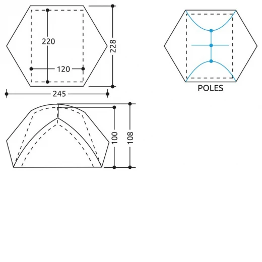 - Double toit : Nylon Ripstop 30 D avec enduction polyuréthane, imperméabilité > 2 000 mm.