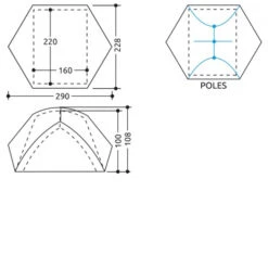 DotĂ©e d’une structure autoportante avec armature intĂ©grĂ©e, elle possède des clips rapides qui permettent un assemblage rapide et intuitif, très pratique par mauvais temps. Des sangles rĂ©glables avec Ĺ“illets mĂ©talliques et sangles Velcro® permettent de fixer le double toit Ă l’armature, tandis que des tendeurs assurent une mise en tension simple et sĂ»re.Â