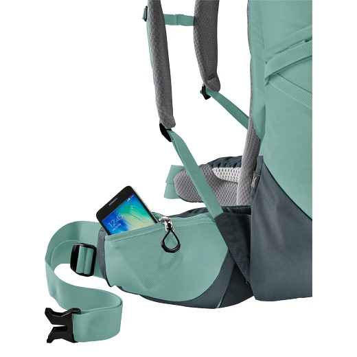 Confortable et très robuste, le sac à dos Aircontact Core 45 + 10 SL Jade est un modèle Deuter très fonctionnel et parfaitement adapté à la morphologie féminine. Doté de la coupe SL soigneusement étudiée et constamment améliorée par Deuter, il possède en effet un dos plus court que le modèle mixte, ainsi que des bretelles plus étroites et des ailerons de hanche de forme conique.