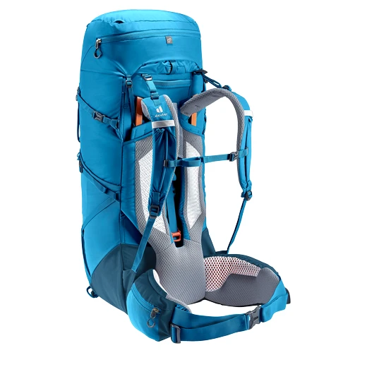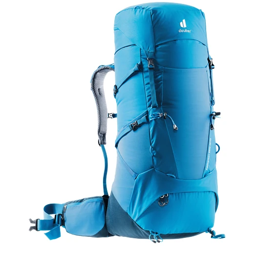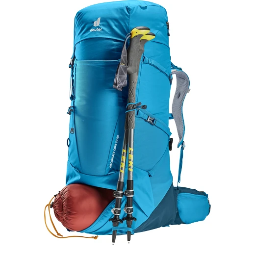 Extrêmement robuste et confortable, le sac à dos Aircontact Core 50 + 10 Bleu Reef Ink est un modèle Deuter idéal pour vos treks et longues randonnées en itinérance.