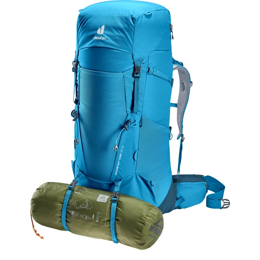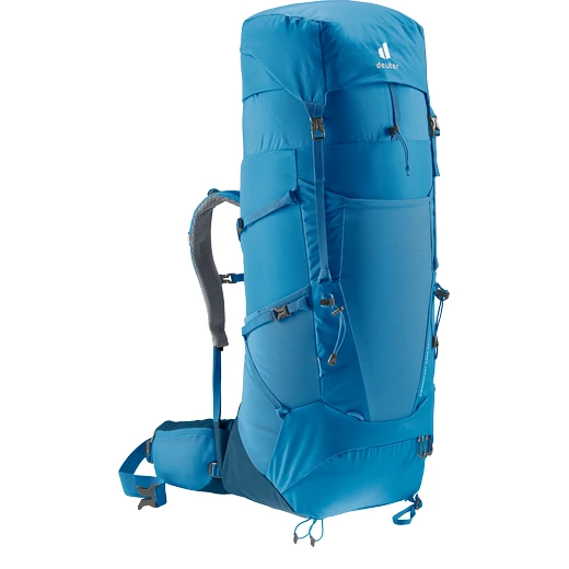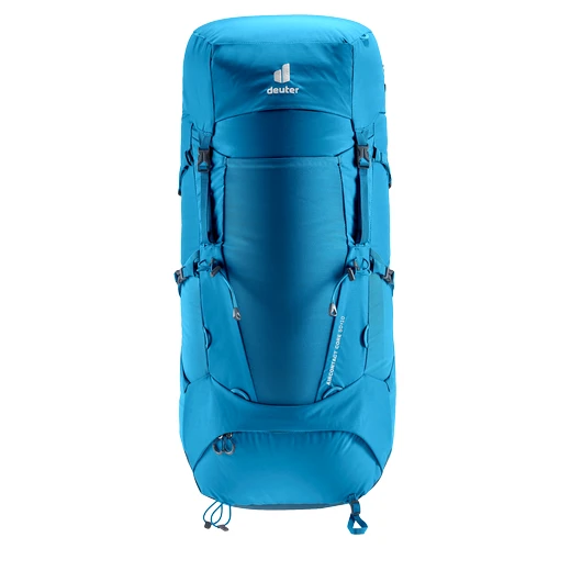 Très pratique d’utilisation, le Aircontact Core 50 + 10 Bleu possède une ouverture frontale spacieuse en forme de J pour un accès rapide à toutes vos affaires et une bonne vue d’ensemble sans avoir à vider votre sac. Ses sangles de compression sont quant à elles très polyvalentes, puisqu’elles peuvent être fixées individuellement pour s’adapter à vos équipements variés. Natte isolante, tente, tapis de sol : tout pourra être fixé à votre sac de façon simple et intuitive. Enfin, son volume pourra être agrandi de 10 litres grâce à son rabat réglable en hauteur qui offre un espace de rangement stable, pour un volume total de 60 litres.