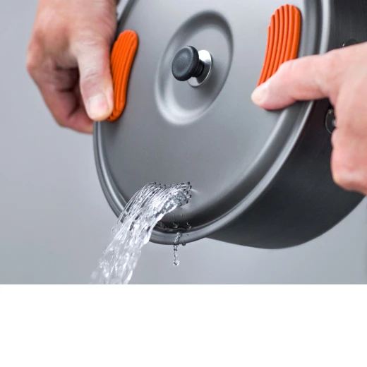Indispensable en bivouac, en trekking ou en road-trip, la popote Halulite 2 L Pot se distingue par sa fonctionnalitĂ©. LĂ©gĂšre et robuste, cette popote de 2 litres signĂ©e GSI Outdoors dispose de 2 poignĂ©es rĂ©tractables et verrouillables en acier inoxydable avec revĂȘtement siliconĂ© pour faciliter les manipulations et ne pas se brĂ»ler les doigts lors de la prĂ©paration du repas. IngĂ©nieux, le couvercle de cette popote est dotĂ© de 2 patins en silicone et de trous intĂ©grĂ©s afin d’Ă©goutter les aliments.