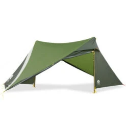 Réalisé en nylon Ripstop et en maille No-See-Um Mesh, cet abri 3 saisons signé Sierra Designs de 880 grammes offre un espace habitable (2,77m²) pour 1 personne avec en plus 2 absides afin de stocker le sac à dos.