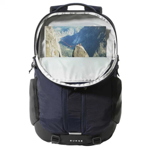 L’ouverture de type borne de ce sac Ă dos The North Face permet d’accĂ©der rapidement au volume principal. Pour organiser votre rangement, le sac Ă dos Surge dispose d’un compartiment spĂ©cifique pour transporter un ordinateur portable. Le compartiment principal spacieux est optimisĂ© pour accueillir classeurs, livres d’aventures ou magazines de vĂ©lo ainsi qu’une polaire. Le compartiment avant est dotĂ© de poches intĂ©rieures pour organiser votre rangement et d’une pochette rembourrĂ©e pour tablette.