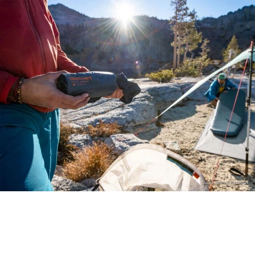 Equipé de la valve WingLock, le matelas gonflable NéoAir UberLite se gonfle en un clin d’œil grâce au sac-pompe inclus.