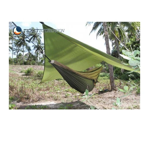 Le Moon Tarp Hamac de la marque Ticket To The Moon est une protection efficace de hamac contre la pluie, le vent et le soleil.