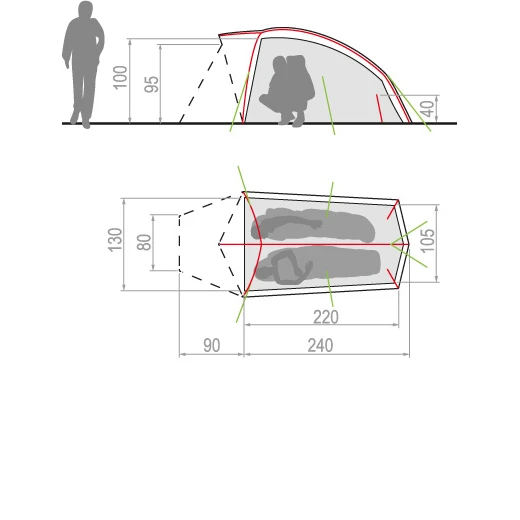- Double toit : 100% Polyamide –Â 40 D Ripstop both sides Silicone coated